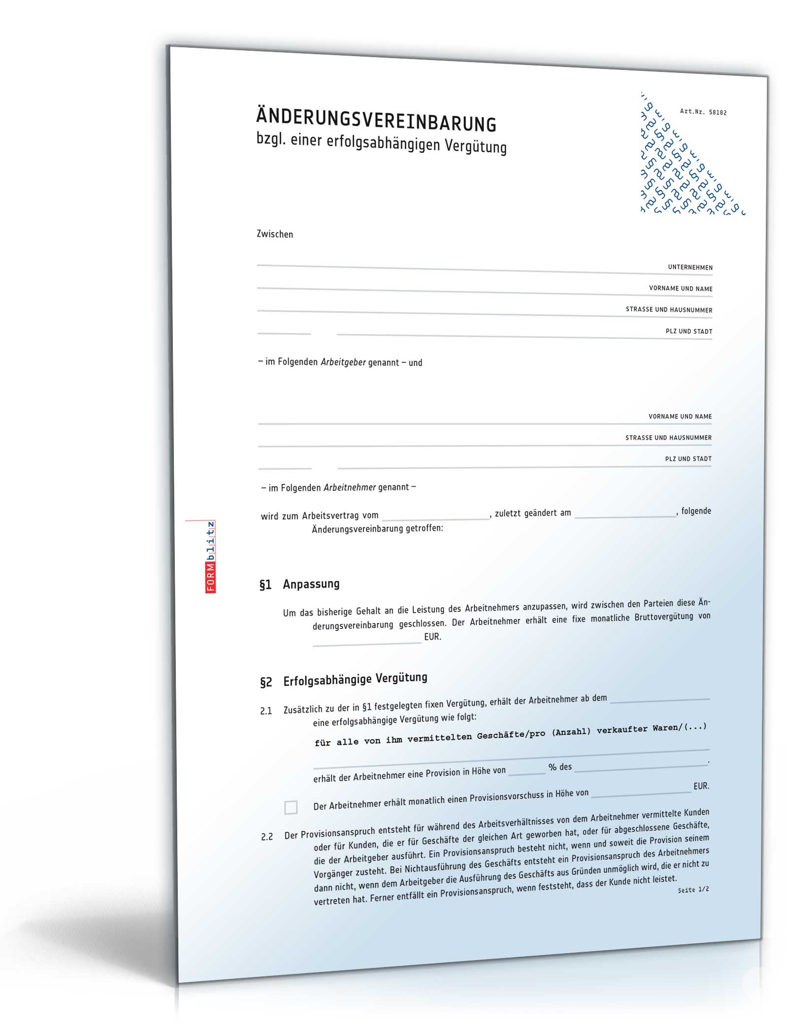 Änderung des Arbeitsvertrages bezüglich einer Provision mithilfe dieser Vorlage vereinbaren. Einfach downloaden!