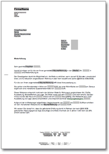 Vorlage für die Ankündigung der Erhöhung der Miete sofort zum Download