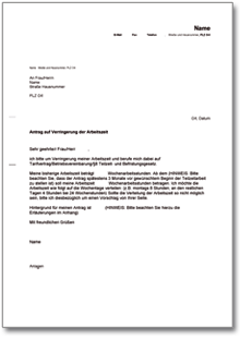 Sie wollen die Anzahl Ihrer Arbeitsstunden reduzieren? Der Gesetzgeber macht Ihnen den Einstieg in die Teilzeit leicht. Sie müssen Ihren Wunsch allerdings rechtzeitig und formal korrekt bei Ihrem Arbeitgeber anmelden. Nutzen Sie unsere Vorlage, die Sie lediglich mit Ihren individuellen Daten ausfüllen müssen. Im Anhang zum Musterbrief finden Sie umfangreiche Erläuterungen zu den Voraussetzungen des Anspruchs auf Teilzeitarbeit.