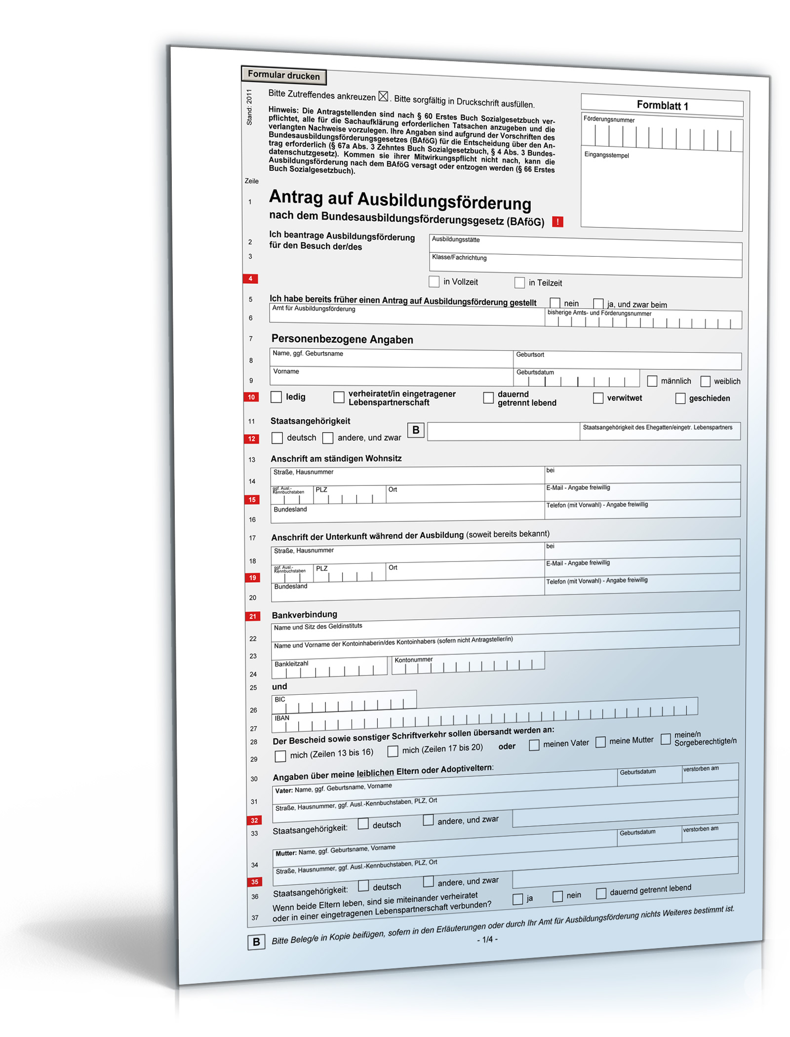 Amtlicher Antrag auf Ausbildungsförderung nach dem Bundesausbildungsförderungsgesetz (BAföG) sofort zum Download bei Formblitz.