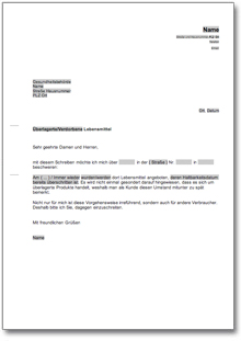 Wenn Sie feststellen, dass ein Händler verdorbene Lebensmittel anbietet oder das Haltbarkeitsdatum von Nahrungsgütern überschritten ist, sollten Sie diese Angelegenheit nicht auf sich beruhen lassen. Mit dieser Vorlage können Sie sich als Konsument beziehungsweise Verbraucher bei der Gesundheitsbehörde über die Nichteinhaltung des Lebensmittelgesetzes (LebensmittelG) beschweren. So können Sie sicherstellen, dass die Behörden einschreiten und andere Verbraucher nicht geschädigt werden.