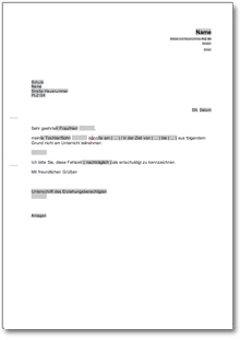 Vorlage für eine Entschuldigung für die Schule sofort zum Download.