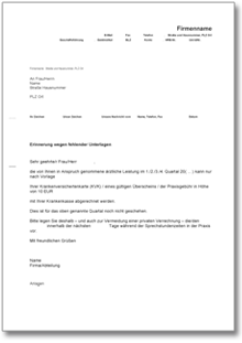 Manche Patienten vergessen Ihre Krankenversichertenkarte und beteuern, diese so bald wie möglich nachzureichen. Doch leider wird häufig auch dieses Versprechen vergessen. Mit der Erinnerung an die fehlende Krankenversichertenkarte, die in Form eines wiedervendbaren Musterbriefes abgefasst ist, können Praxismitarbeiter den zerstreuten Patienten auf höfliche Weise um Vorlage der Krankenversichertenkarte oder des Überweisungsscheins bitten.