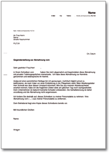 Gegendarstellung zur Abmahnung wegen privater Telefongespräche