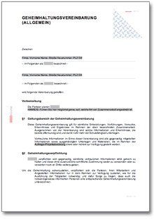 Muster als DOC oder PDF zum Download: Geheimhaltungsvereinbarung über Kooperationen bzw. gemeinsame Projekte. Vorlage hier herunterladen.