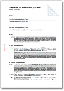 Vorlage für einen internationalen Kooperationsvertrag sofort zum Download. Template for an international cooperation agreement available for immediate download.