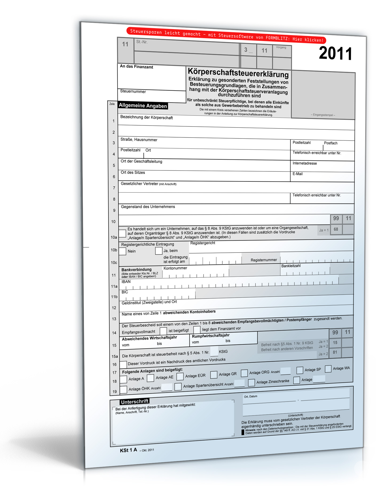 Steuerformular "Körperschaftsteuererklärung" für 2011 sofort zum Download.