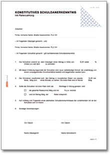 Vorlage für ein konstitutives Schuldanerkenntnis mit Ratenzahlung sofort zum Download.