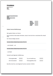 Vorlage für eine Veräusserungsanzeige an die KFZ-Versicherung sofort zum Download.