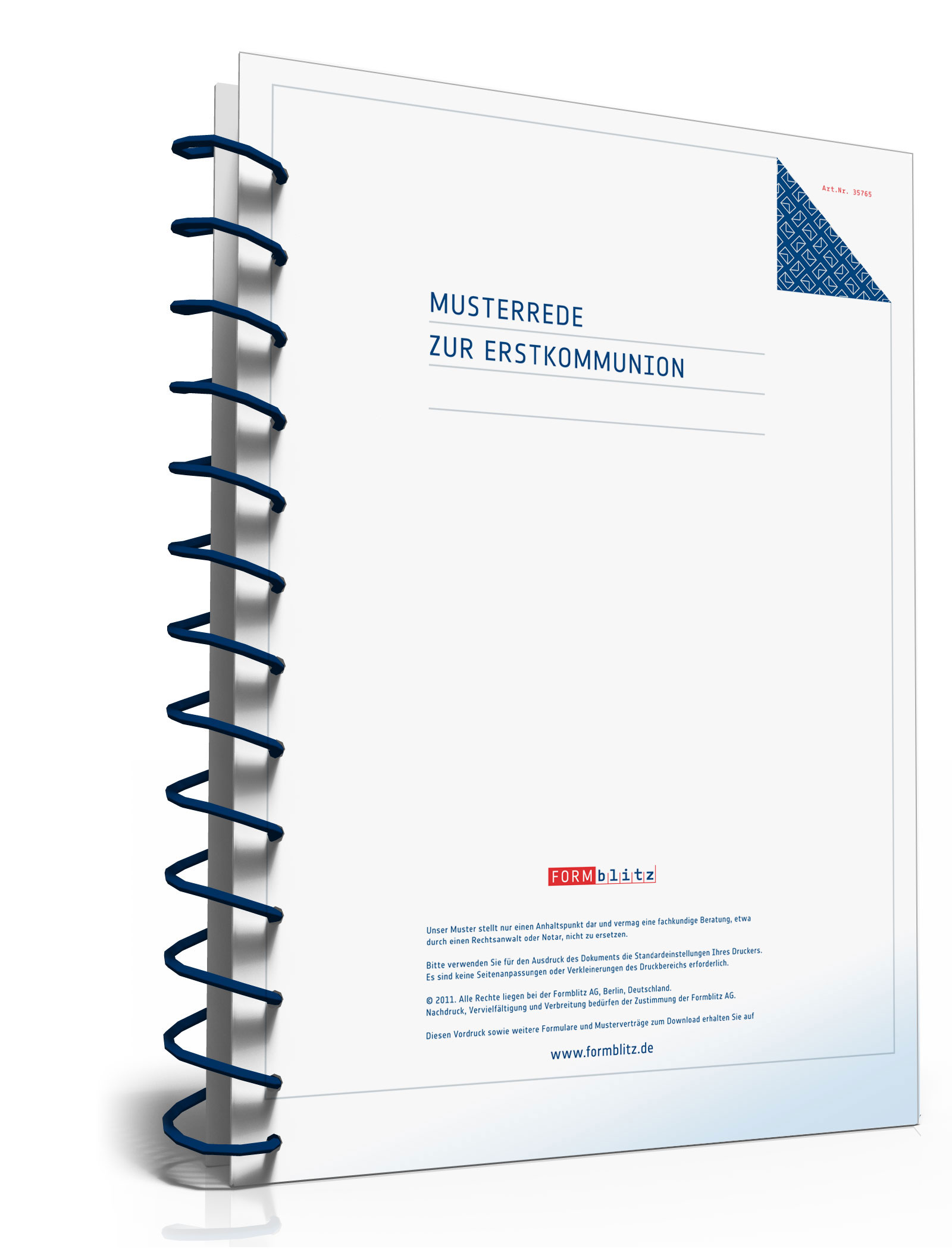 Das Dokumenten-Paket (ZIP-Archiv) enthält neben der Rede zur Erstkommunion den FORMBLITZ-Ratgeber "Die richtige Rede". Der Leitfaden gibt Ihnen viele nützliche Hinweise zum Verfassen und Vortragen einer gelungenen Rede.