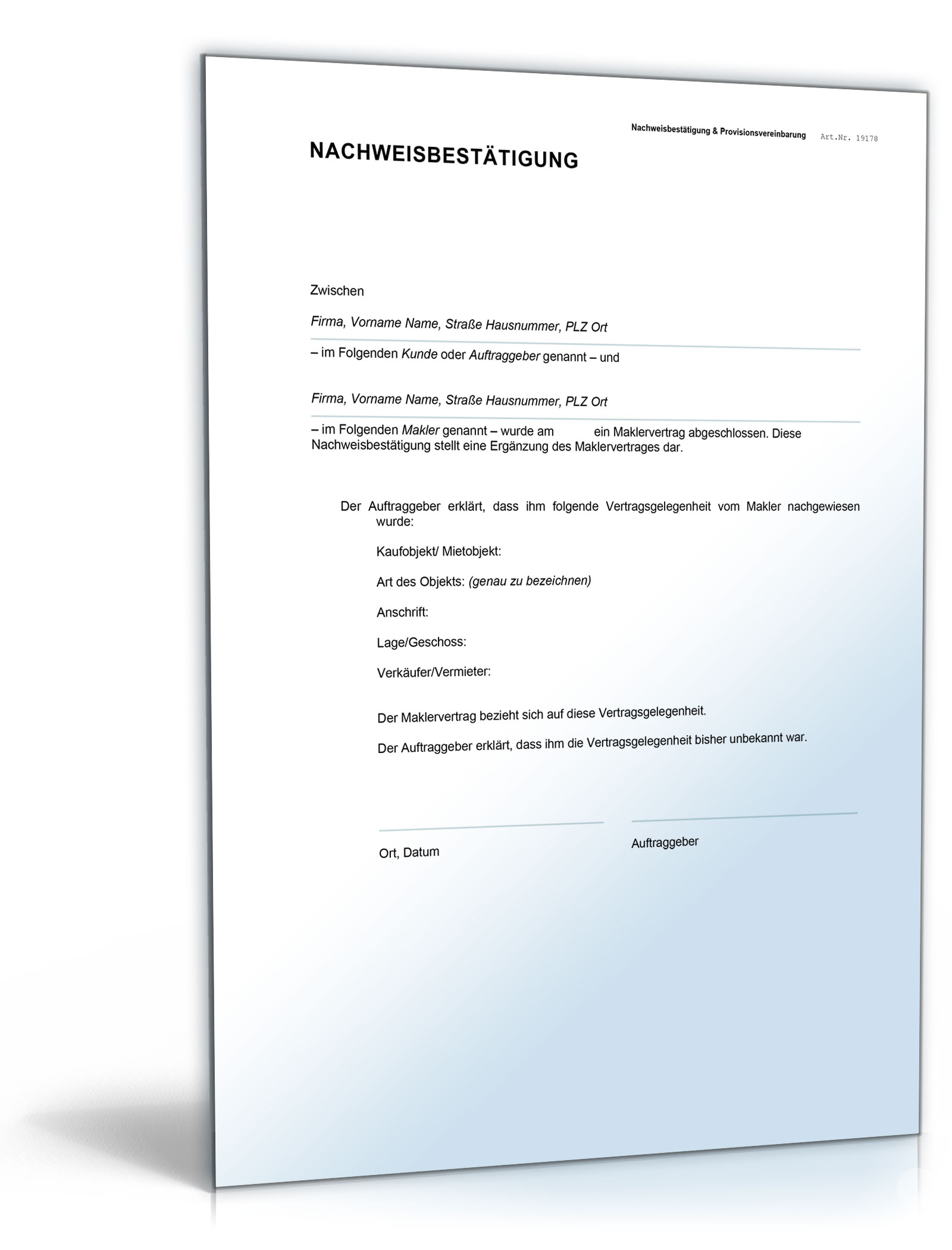 Nachweisbestätigung und Provisionsvereinbarung – Mustervorlage zum Download.
