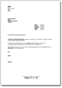 Ärztliche Unbedenklichkeitsbescheinigung bezüglich der Berufsausübung sofort zum Download.